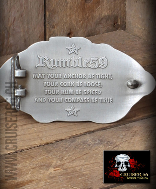Die Front dieses Buckles überzeugt durch den erhabenen Anker mit Tau, der von Schwalben eingerahmt wird.