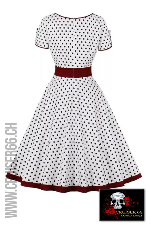 - Elegantes Swing Kleid Weiss mit Punkten in Schwarz