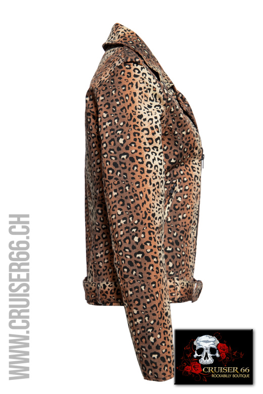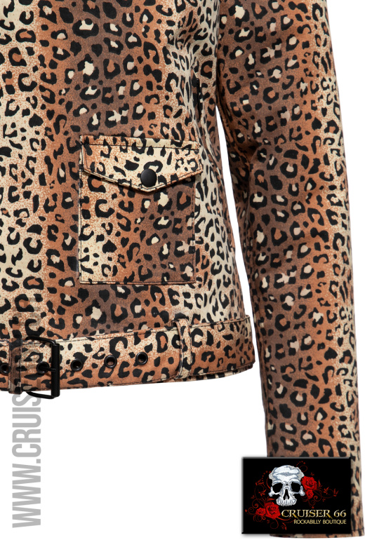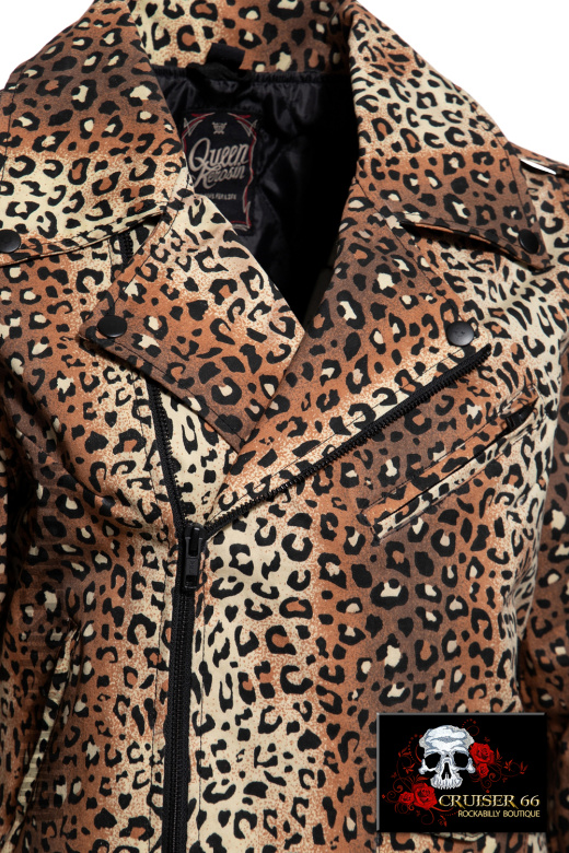 Erfasse den rebellischen Geist von Marlon Brando und paare ihn mit einem gewagten Leo-Look, und was erhältst du? Unsere atemberaubende Queen Kerosin Bikerjacke im Leo-Design!