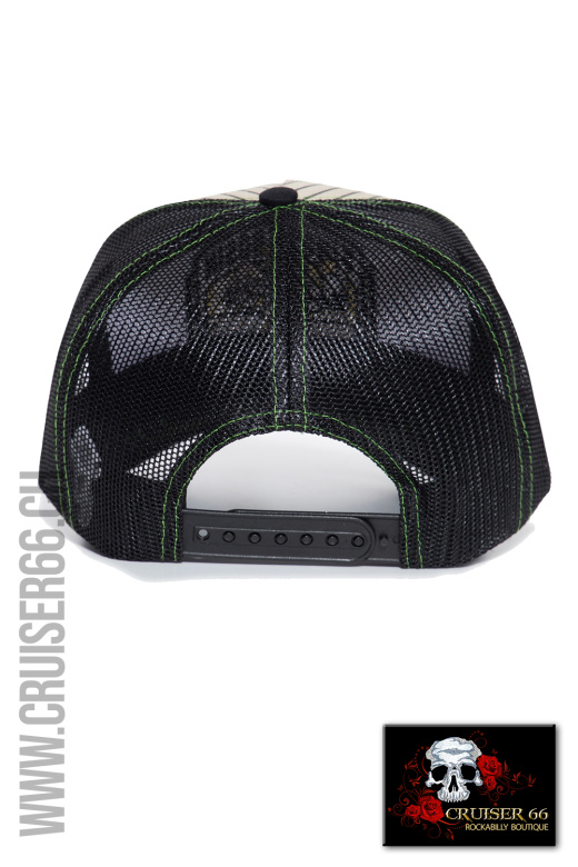 Für einen Hingucker sorgt diese Trucker Cap von King Kerosin mit dem außergewöhnlich schönem Retro-Design. Der Blickfang ist die hochwertige Stickerei auf der kontrastierenden gestreiften Front.