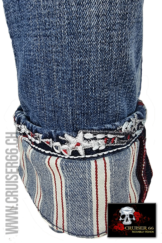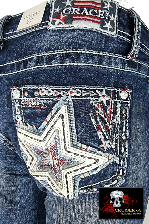 Den frechen Jeans-Look ergänzen Sie mit passenden Highheels oder einem farbigen Pumps. Auch Biker, Linedancer, Rock'n Roller und Mode-Freaks lieben die US-Designer Jeans, vor allem gehören sie zur Ausstattung eines Cowboys und in den Schrank jedes Cowgirls und Western Reiterin, prominent und unschlagbar sind sie sicher auch auf dem Linedance Parkett.