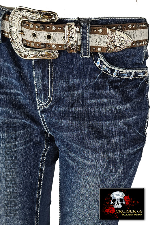 Den frechen Jeans-Look ergänzen Sie mit passenden Highheels oder einem farbigen Pumps. Auch Biker, Linedancer, Rock'n Roller und Mode-Freaks lieben die US-Designer Jeans, vor allem gehören sie zur Ausstattung eines Cowboys und in den Schrank jedes Cowgirls und Western Reiterin, prominent und unschlagbar sind sie sicher auch auf dem Linedance Parkett.