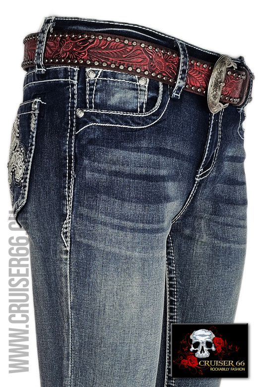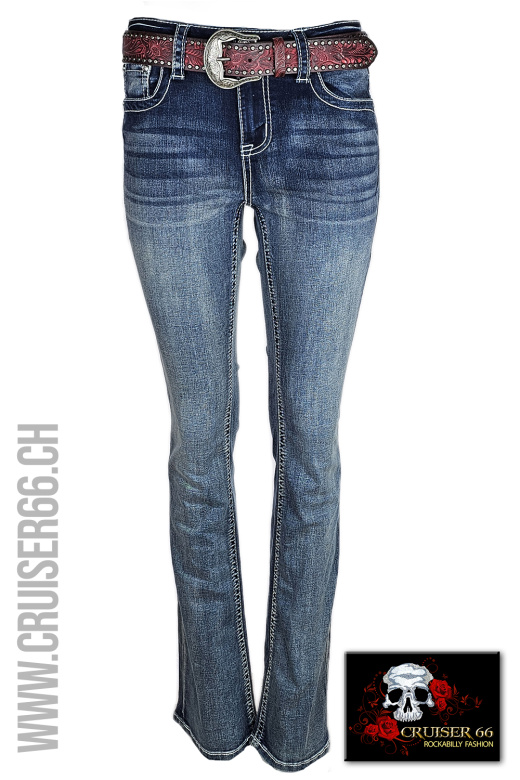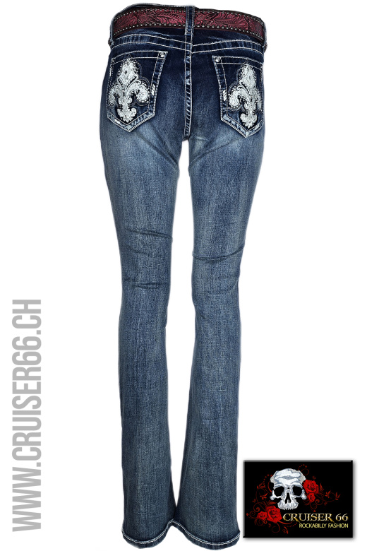Den frechen Jeans-Look ergänzen Sie mit passenden Highheels oder einem farbigen Pumps. Auch Biker, Linedancer, Rock'n Roller und Mode-Freaks lieben die US-Designer Jeans, vor allem gehören sie zur Ausstattung eines Cowboys und in den Schrank jedes Cowgirls und Western Reiterin, prominent und unschlagbar sind sie sicher auch auf dem Linedance Parkett.