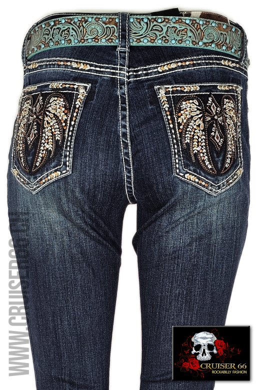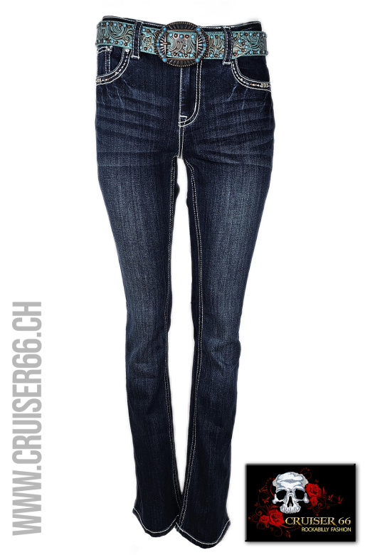 Den frechen Jeans-Look ergänzen Sie mit passenden Highheels oder einem farbigen Pumps. Auch Biker, Linedancer, Rock'n Roller und Mode-Freaks lieben die US-Designer Jeans, vor allem gehören sie zur Ausstattung eines Cowboys und in den Schrank jedes Cowgirls und Western Reiterin, prominent und unschlagbar sind sie sicher auch auf dem Linedance Parkett.