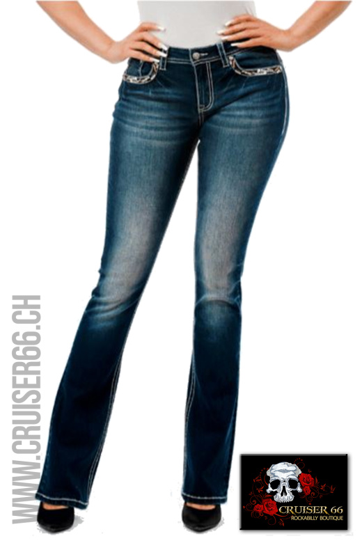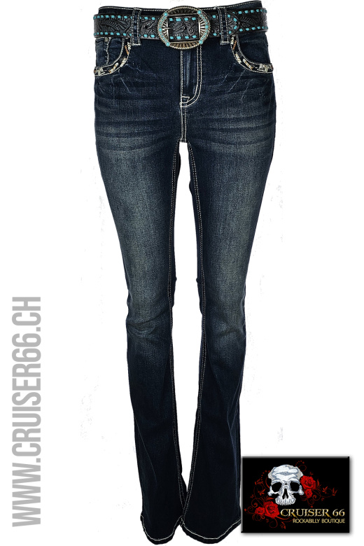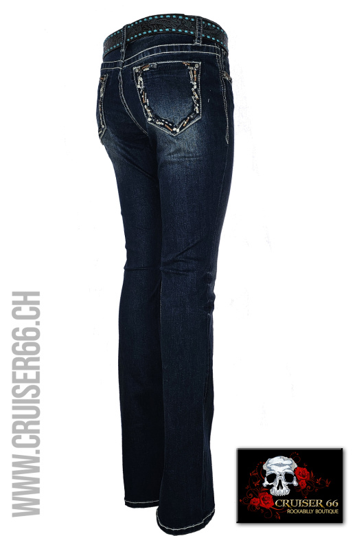 Den frechen Jeans-Look ergänzen Sie mit passenden Highheels oder einem farbigen Pumps. Auch Biker, Linedancer, Rock'n Roller und Mode-Freaks lieben die US-Designer Jeans, vor allem gehören sie zur Ausstattung eines Cowboys und in den Schrank jedes Cowgirls und Western Reiterin, prominent und unschlagbar sind sie sicher auch auf dem Linedance Parkett.