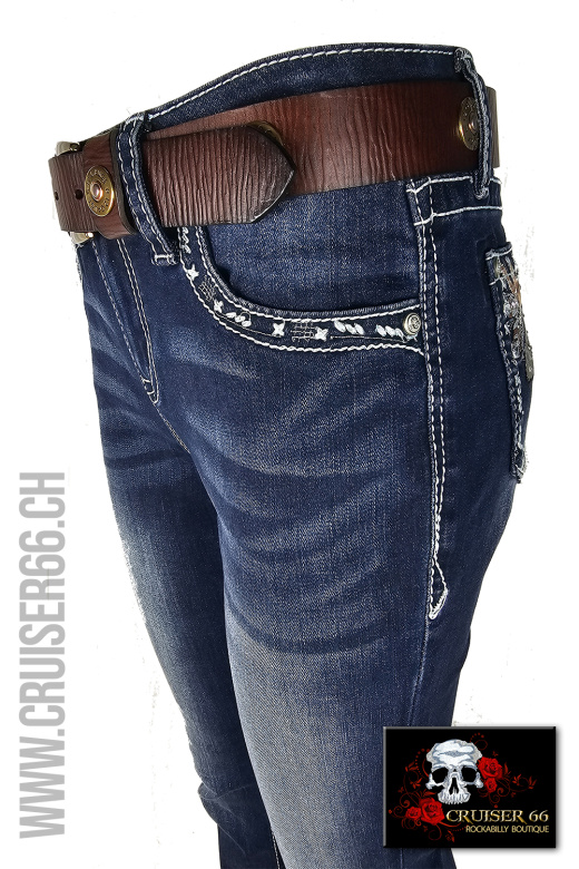 Den frechen Jeans-Look ergänzen Sie mit passenden Highheels oder einem farbigen Pumps. Auch Biker, Linedancer, Rock'n Roller und Mode-Freaks lieben die US-Designer Jeans, vor allem gehören sie zur Ausstattung eines Cowboys und in den Schrank jedes Cowgirls und Western Reiterin, prominent und unschlagbar sind sie sicher auch auf dem Linedance Parkett.