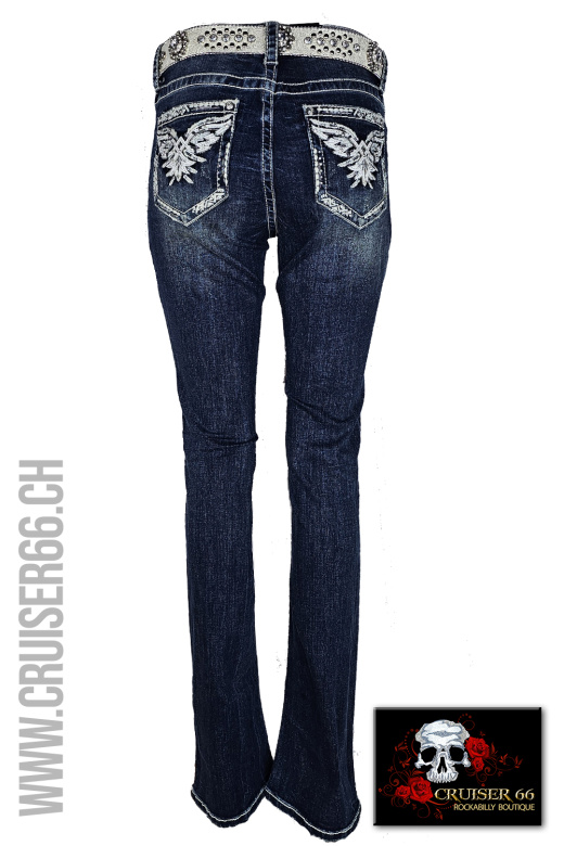 Den frechen Jeans-Look ergänzen Sie mit passenden Highheels oder einem farbigen Pumps. Auch Biker, Linedancer, Rock'n Roller und Mode-Freaks lieben die US-Designer Jeans, vor allem gehören sie zur Ausstattung eines Cowboys und in den Schrank jedes Cowgirls und Western Reiterin, prominent und unschlagbar sind sie sicher auch auf dem Linedance Parkett.