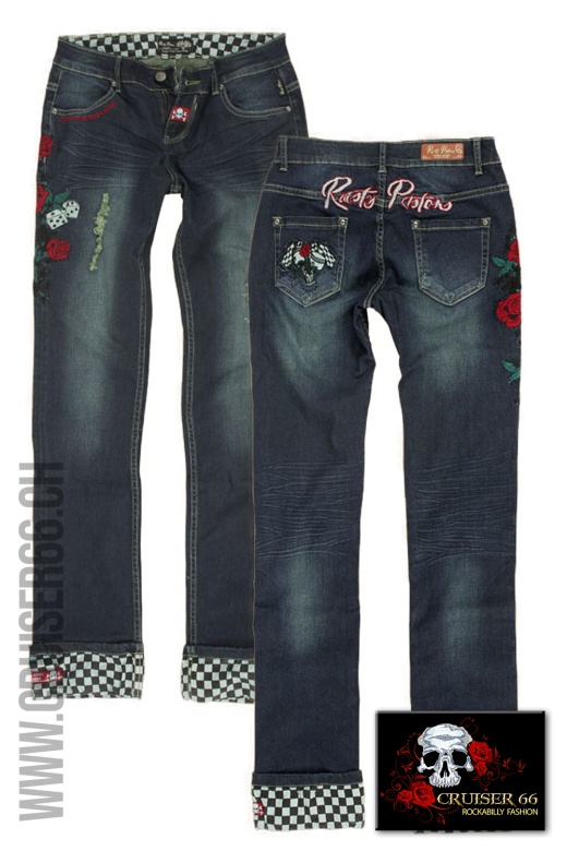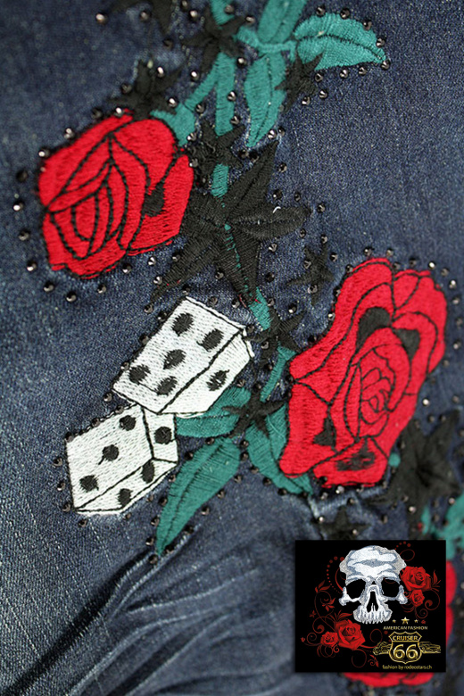 - Rockabilly Motiv gestickt mit Rosen und Würfeln