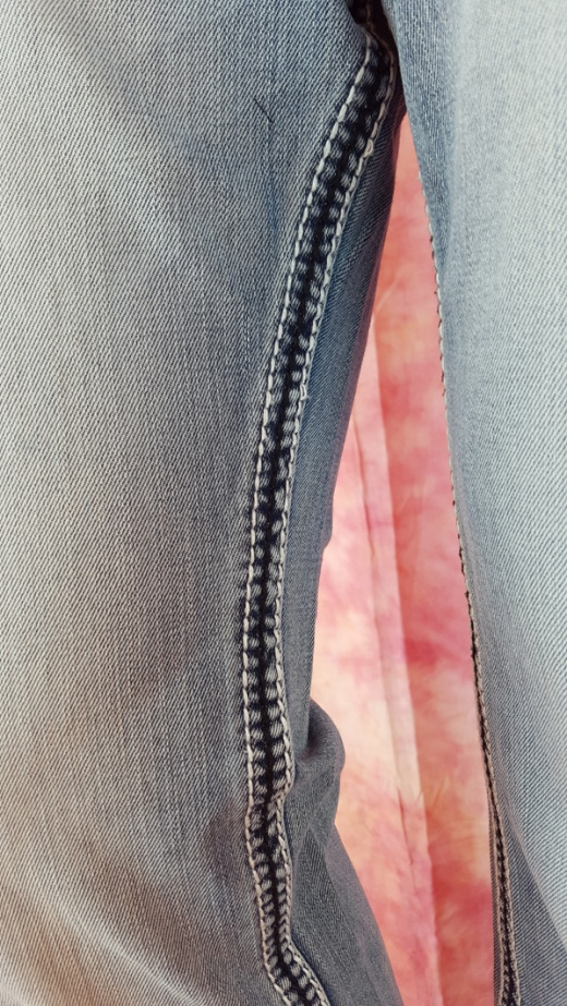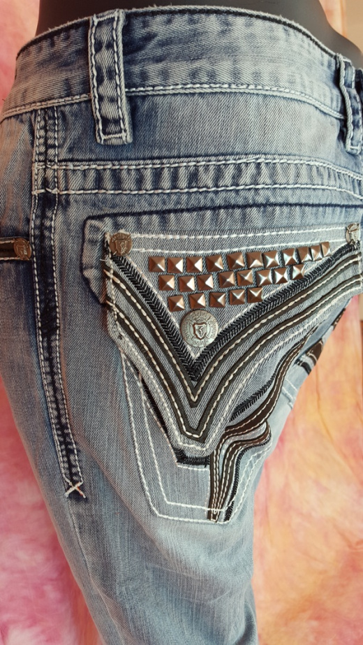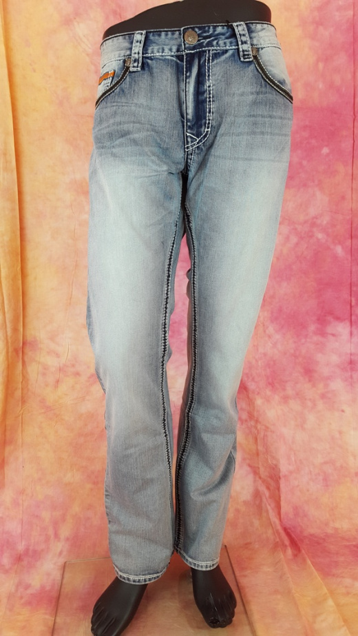 Amerikanische Jeans mit weissen Ziernähten und auffälligem Design finden