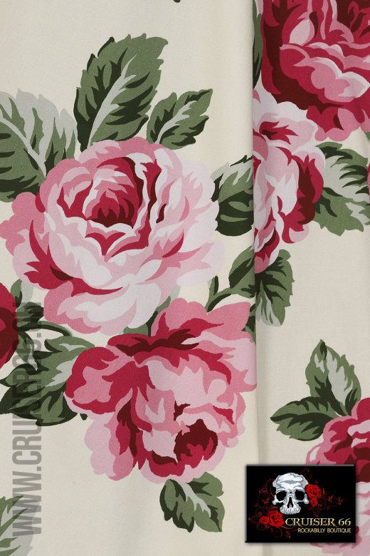 Nicht nur hübsch, sondern auch extrem komfortabel zu tragen. Gestaltet mit herrlichen, grossen Rosen auf einem Crèmefarbigen Hintergrund mit grünen Blättern.