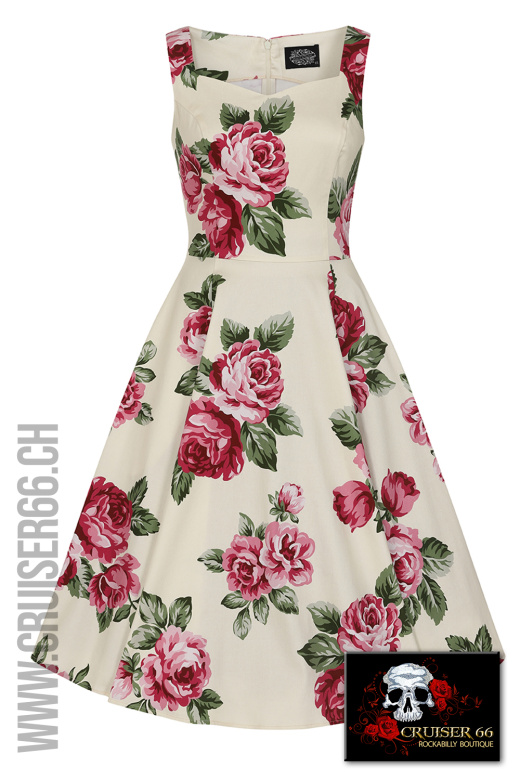 Der Sweetheart Ausschnitt passt zur süssen Natur von diesem Kleid, zusammen mit dem anliegenden Oberteil und dem grosszügigen Swing Rock sorgt er für zusätzliche Spannung.