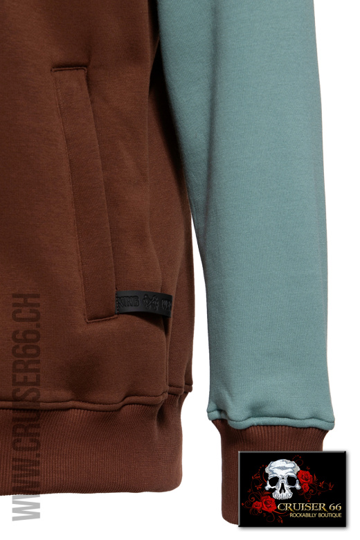 Das echte Highlight ist der erfrischende Farbkontrast, die pastellgrünen Ärmel im Raglanstil mit einem braunen Körper kombiniert. Dieser Mix lässt Retro-Herzen höher schlagen und fügt gleichzeitig einen modernen Twist hinzu. Akzentuiert wird das Design durch zwei braunfarbige Streifen am Oberarm, die das sportliche Aussehen betonen.
