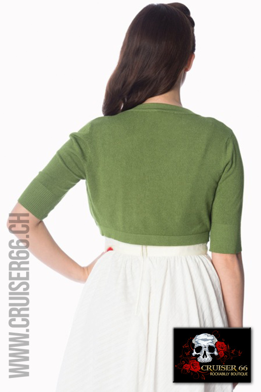 Ob als farbiges Accessoire oder als nützliches Jäcken, dieser Bolero trägt nicht auf und lässt sich auch gut unter der Jacke tragen.