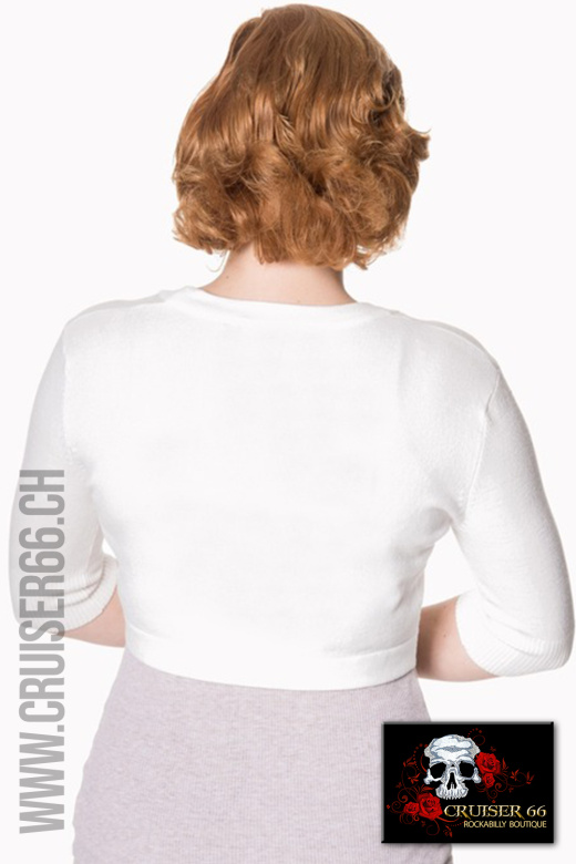 Ob als farbiges Accessoire oder als nützliches Jäcken, dieser Bolero trägt nicht auf und lässt sich auch gut unter der Jacke tragen.