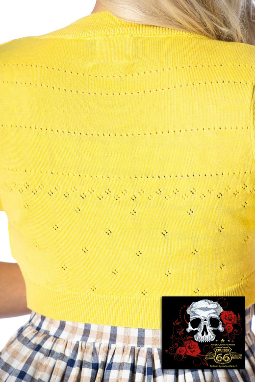 Ob als farbiges Accessoire oder als nützliches Jäcken, dieser Bolero trägt nicht auf und lässt sich auch gut unter der Jacke tragen.