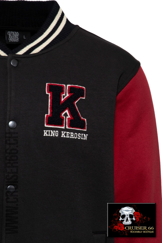 Die King Kerosin College-Jacke ist mehr als nur ein Kleidungsstück; sie ist ein Statement für alle, die das Benzin im Blut spüren und die Freiheit der Straße lieben.