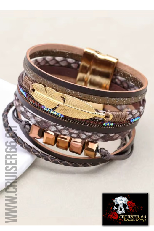 - Schmuckarmband Leder Dunkelbraun für Damen