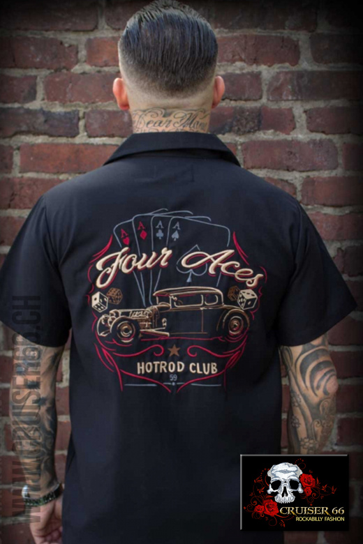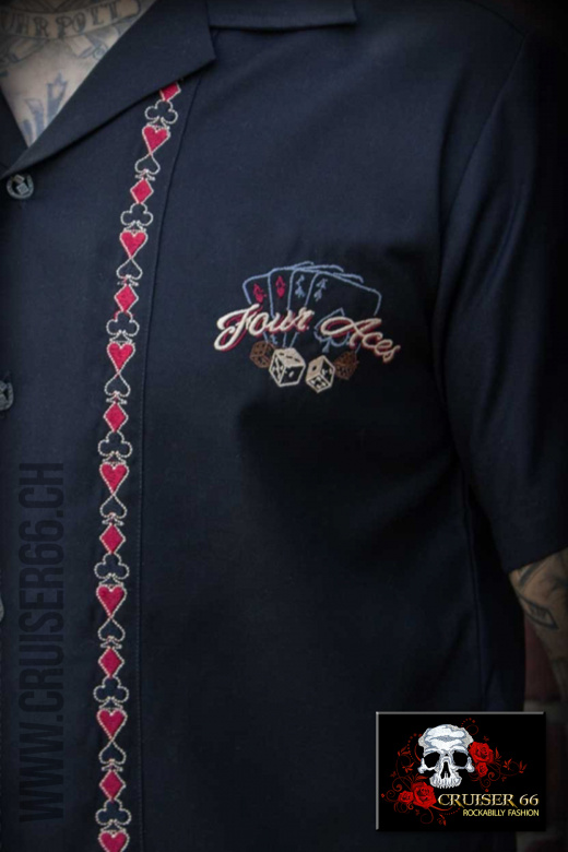 Durch die Farbkombi und die Stickereien sorgt dieses coole Vintage Hemd für einen großartigen Rockabilly Look. Der stilsichere Auftritt ist somit gesichert - ganz egal, ob einzeln an der Bar oder unterwegs mit den Jungs vom Club oder der Band.