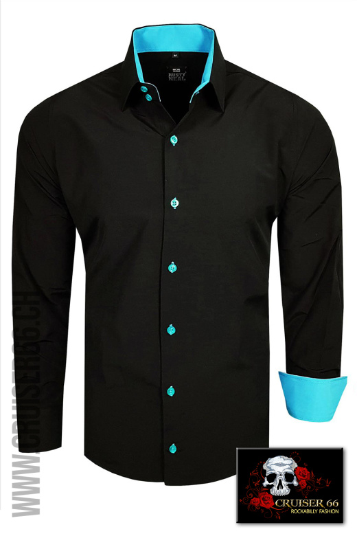 GROOM - HERREN HEMD SCHWARZ-TÜRKIS