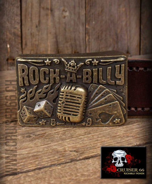 Von Rock'n'Roll über Classic Rock bis hin zu Psychobilly und Punkrock ist doch letzten Endes alles auf den Sound der SUN-Studios zurückzuführen, der Anfang der 50er seinen Siegeszug um die Welt begann. Unter dem Namen "Rockabilly" wurden Grenzen eingerissen und Tabus gebrochen. Hillbillies und Rock'n'Roller ließen gemeinsam die Bühnen erzittern, so dass sich die ältere Generation nur noch entsetzt abwandte. Frenetische Konzerte, Ausschreitungen und der Beginn der Jugendkultur, wie wir sie kennen, waren nur Randerscheinungen eines neuen Musikgenres, das der Leibhaftige höchst selbst aus der Hölle zu uns hinaufgeschickt zu haben schien. Wir präsentieren hier ein tolles Accessoire, um all dem Tribut zu zollen.Cooler Gürtel aus Echtleder mit detailliert geprägter Koppelschnalle.