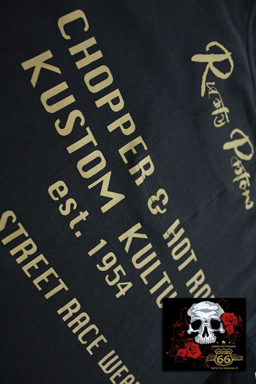 Freches, cooles Garage Motive mit peppigem Druck auf dem Rücken