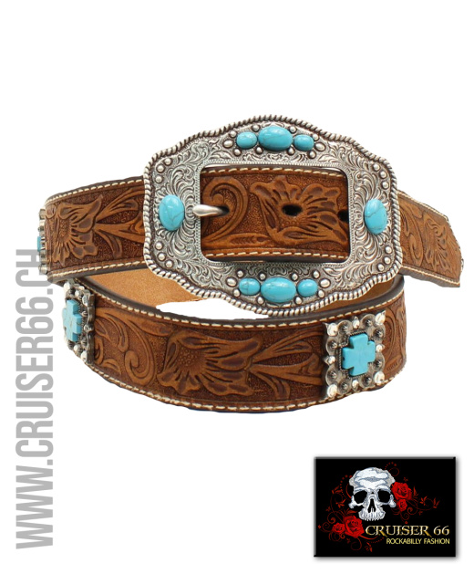 Typischer Westerngürtel mit grosser Schnalle und echten Türkisen verziert