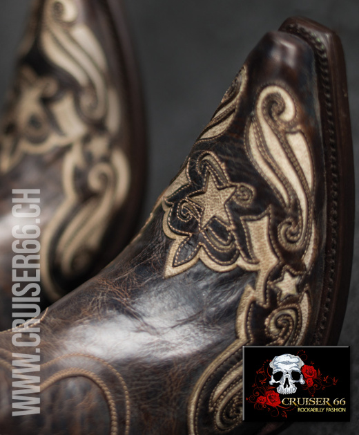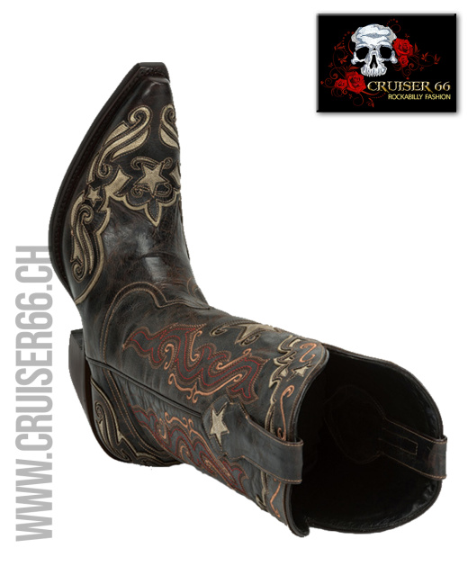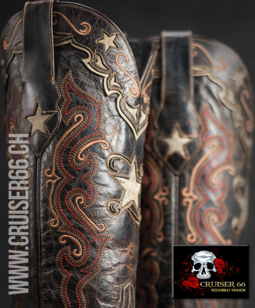 Ausgefallen gestaltet mit exklusiven Stickereien und Einlagen sind diese Stiefel aus sehr weichem Leder von Hand hergestellt. Die Trägerin dieser Boots ist sich grossen Komplimenten sicher.