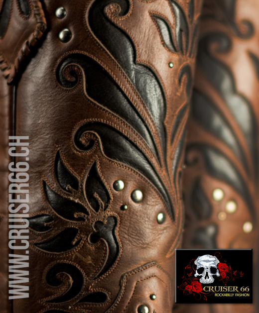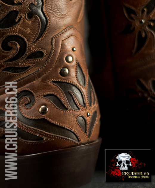 Hauptmerkmal von diesen Boots sind die unglaublich aufwändigen Einlagen. Fachmännisch von Hand genäht mit geflochtenen Elementen, bestückt mit Knöpfen in einem weichen Leder ist diese Ausführung unübertroffen und sicher ein Vorzeigeprodukt in seiner Klasse der besonderen Western Stiefel.
