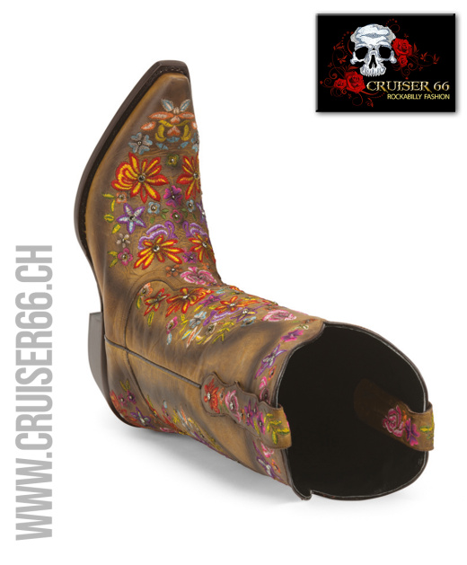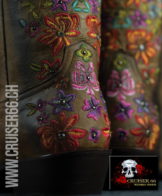 Auffallende exklusive Stickereien zeichnen diese handgefertigten Stiefel aus und die Akzente aus zertifizierten SWAROVSKI® Kristallen machen sie zu einem interessanten und glänzenden Anziehungspunkt.