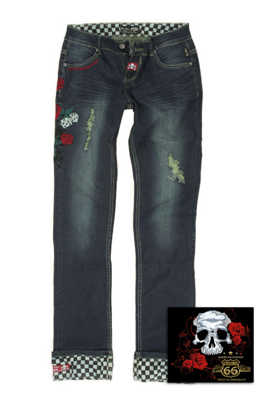 - Rockabilly Motiv gestickt mit Rosen und Würfeln