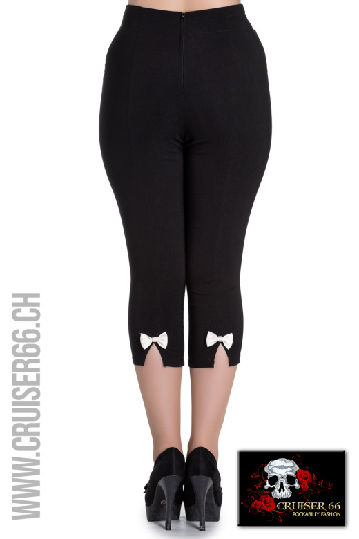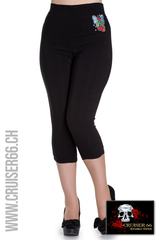 Schwarze Caprihose mit gesticktem Kirschmotiv vorne