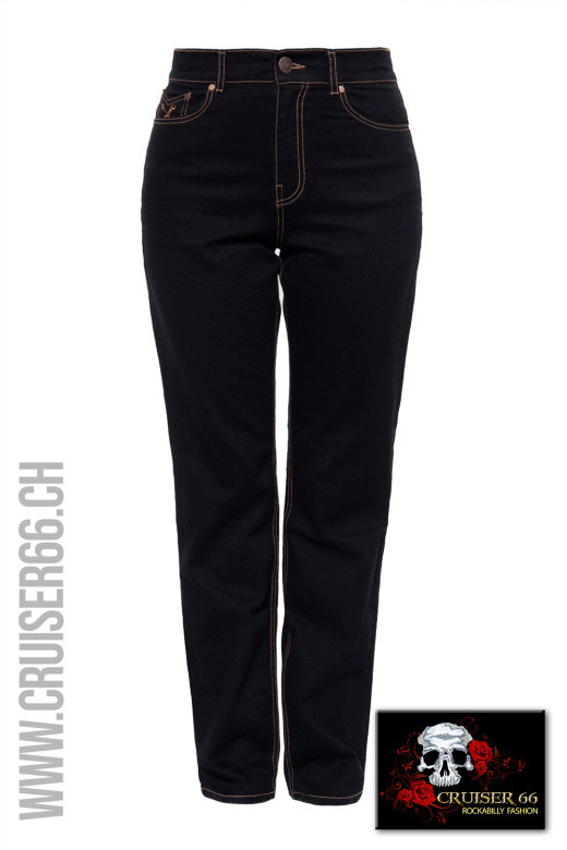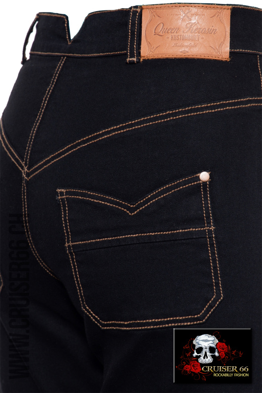 Die High Waist Jeans mit geradem Bein von Queen Kerosin kann mit ihrer tollen