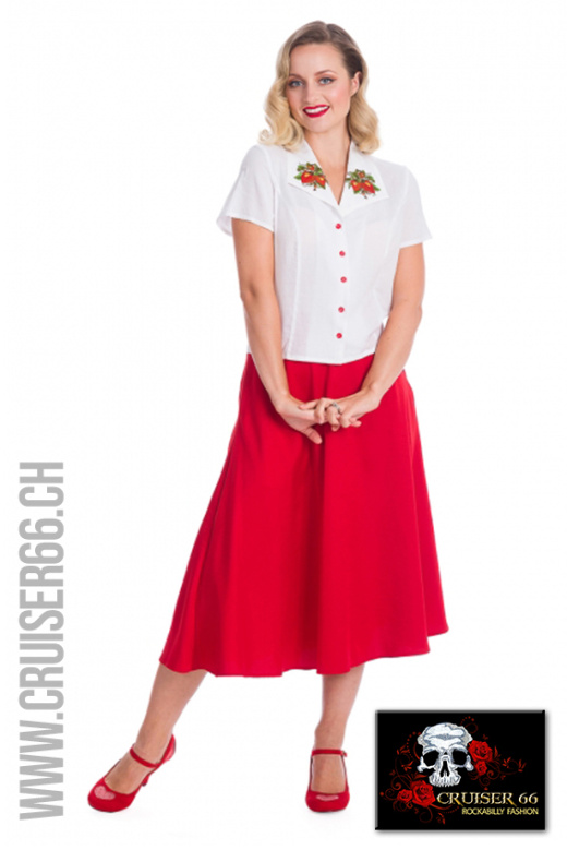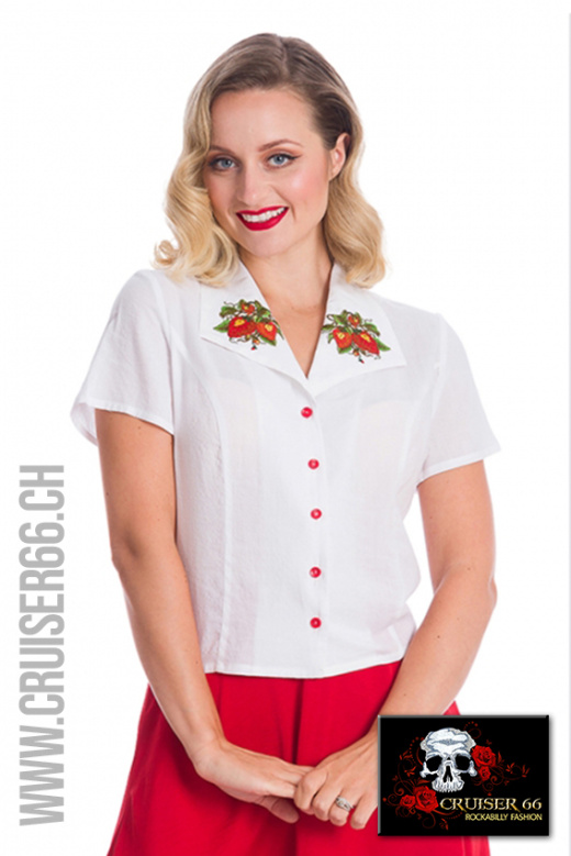 Leichte Bluse mit Erdbeeren bestickt. Sie zaubern gleich den süssen Sommerduft in den Mund.