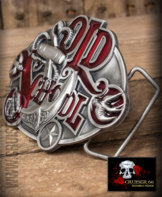 Die Front dieses Buckles überzeugt durch den erhabenen Anker mit Tau, der von Schwalben eingerahmt wird.