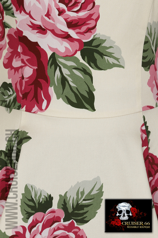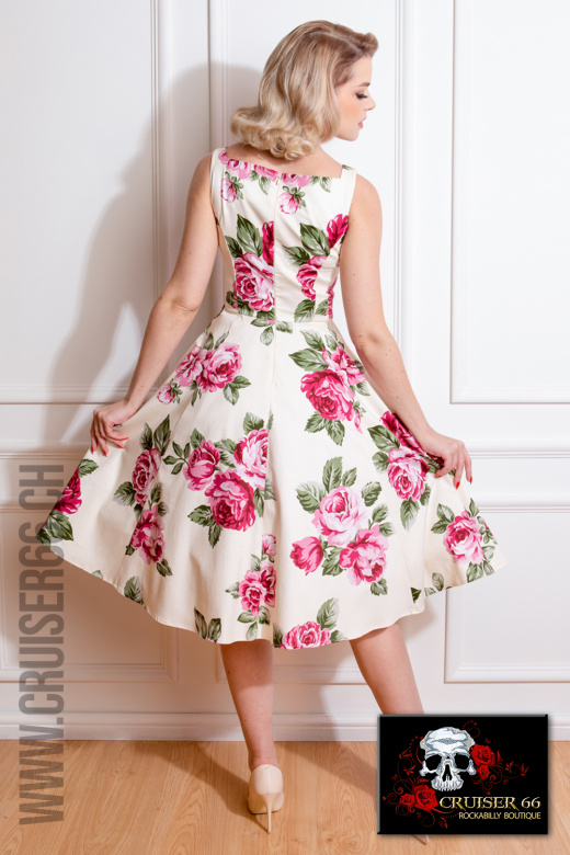 Der Sweetheart Ausschnitt passt zur süssen Natur von diesem Kleid, zusammen mit dem anliegenden Oberteil und dem grosszügigen Swing Rock sorgt er für zusätzliche Spannung.