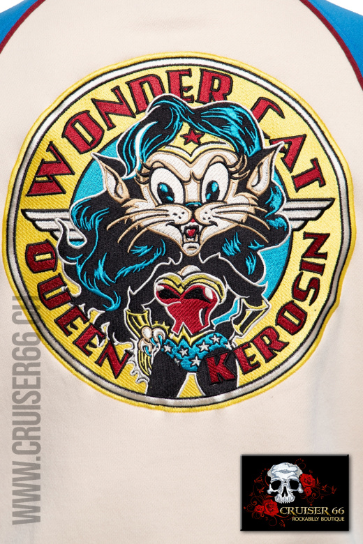 Entfessle die Superheldin in dir mit der neuen Queen Kerosin College-Jacke im 'Wonder Cat'-Design!