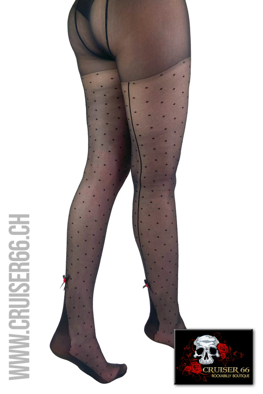 Die Schleife und die Rose verleihen dieser Strumpfhose eine noble Note, das Schwarz verleiht einen schillernden Look. Ergänzt durch die schwarzen Punkte und die schwarze Rückennaht geben Ihnen diese Strumpfhosen die Möglichkeit, sich sexy zu fühlen!