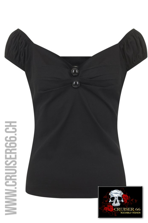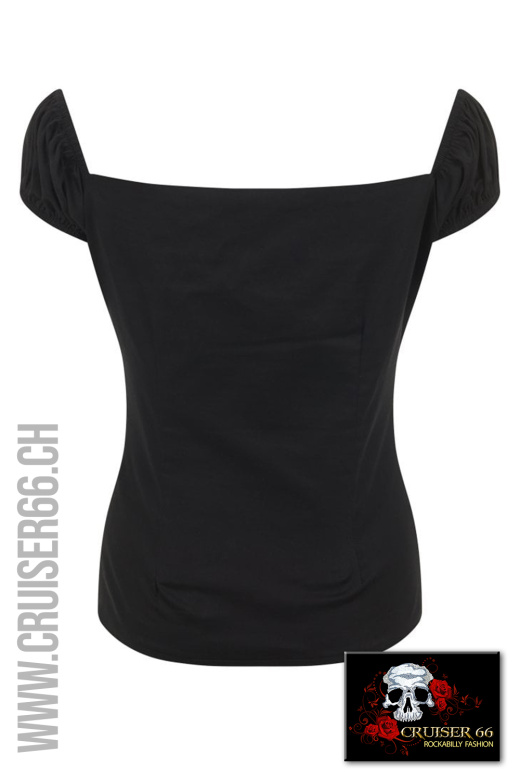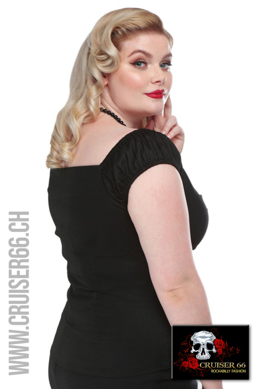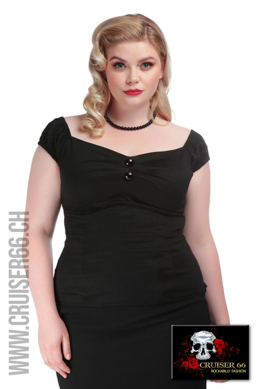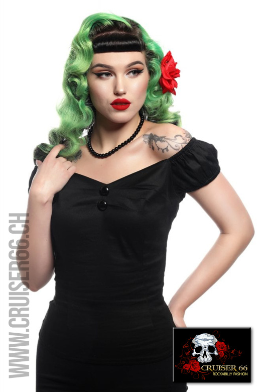 Die pflegeleichten Tops von Collectif im Retro-Style passen zum Rock und auch zur Jeans.