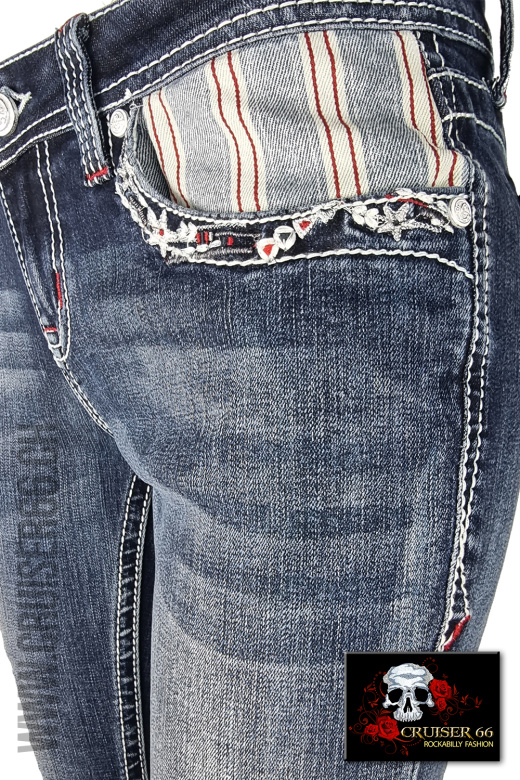 Den frechen Jeans-Look ergänzen Sie mit passenden Highheels oder einem farbigen Pumps. Auch Biker, Linedancer, Rock'n Roller und Mode-Freaks lieben die US-Designer Jeans, vor allem gehören sie zur Ausstattung eines Cowboys und in den Schrank jedes Cowgirls und Western Reiterin, prominent und unschlagbar sind sie sicher auch auf dem Linedance Parkett.
