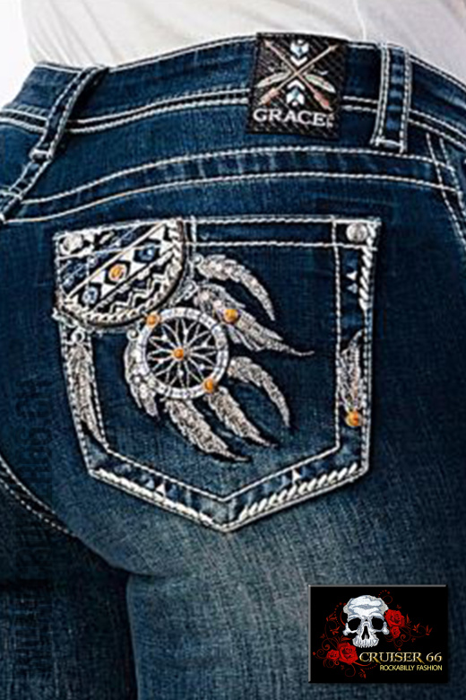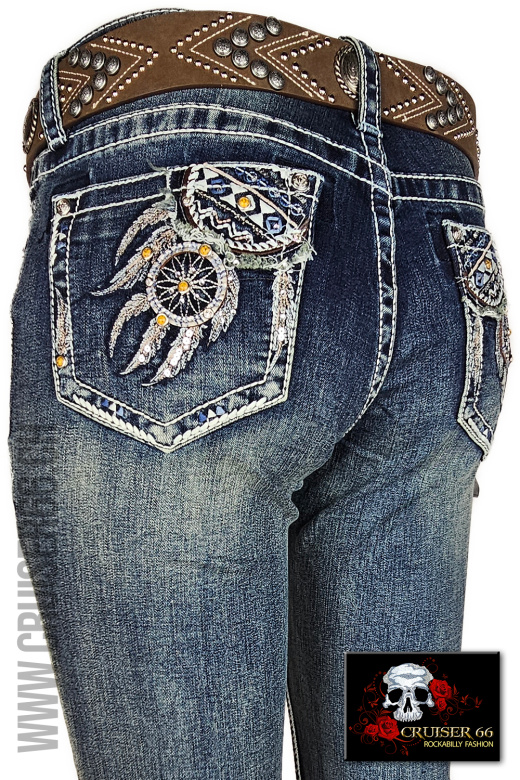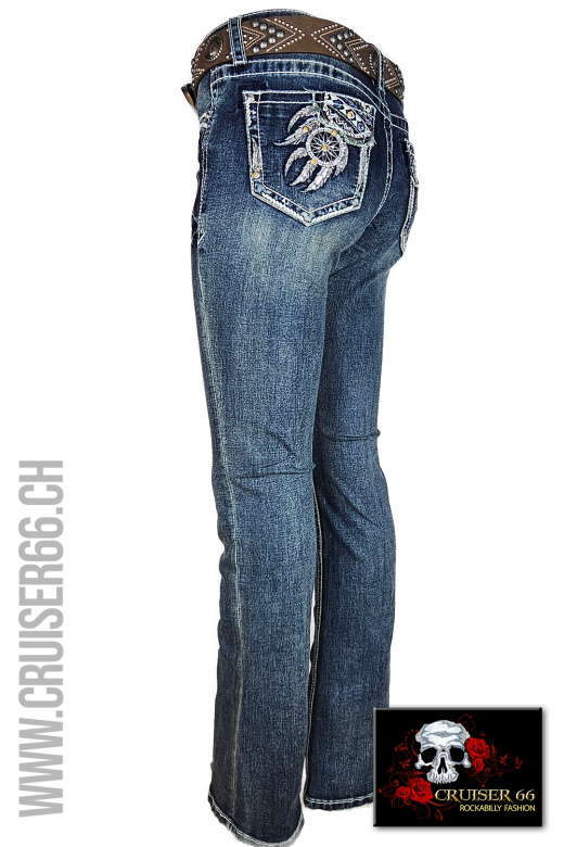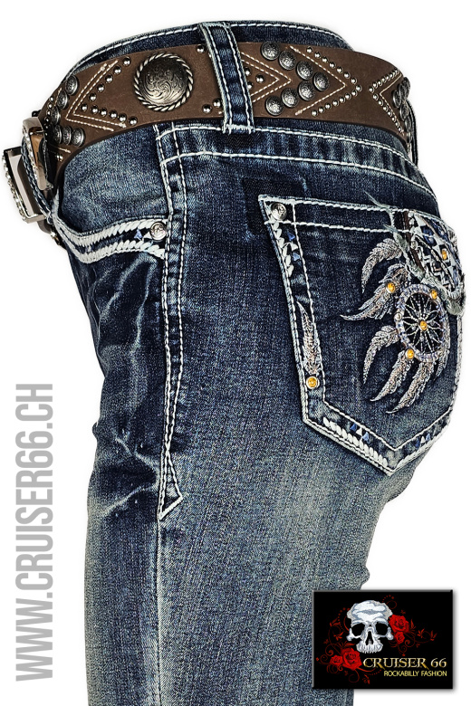 Den frechen Jeans-Look ergänzen Sie mit passenden Highheels oder einem farbigen Pumps. Auch Biker, Linedancer, Rock'n Roller und Mode-Freaks lieben die US-Designer Jeans, vor allem gehören sie zur Ausstattung eines Cowboys und in den Schrank jedes Cowgirls und Western Reiterin, prominent und unschlagbar sind sie sicher auch auf dem Linedance Parkett.