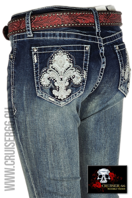 Den frechen Jeans-Look ergänzen Sie mit passenden Highheels oder einem farbigen Pumps. Auch Biker, Linedancer, Rock'n Roller und Mode-Freaks lieben die US-Designer Jeans, vor allem gehören sie zur Ausstattung eines Cowboys und in den Schrank jedes Cowgirls und Western Reiterin, prominent und unschlagbar sind sie sicher auch auf dem Linedance Parkett.