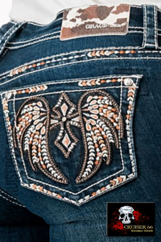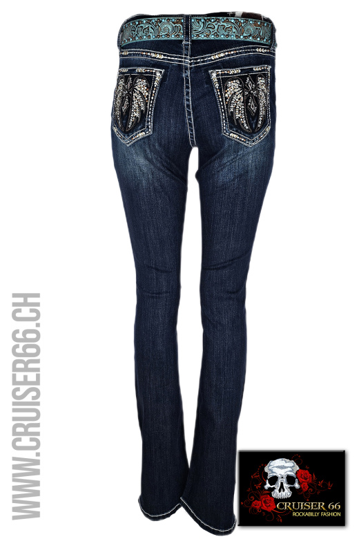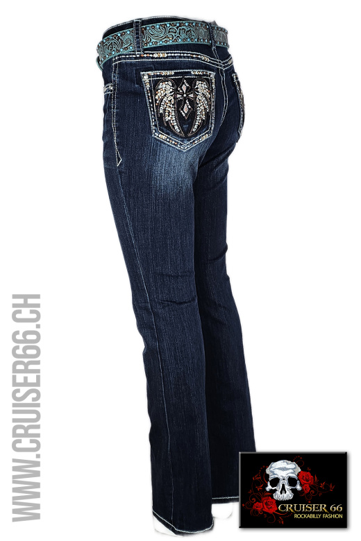 Den frechen Jeans-Look ergänzen Sie mit passenden Highheels oder einem farbigen Pumps. Auch Biker, Linedancer, Rock'n Roller und Mode-Freaks lieben die US-Designer Jeans, vor allem gehören sie zur Ausstattung eines Cowboys und in den Schrank jedes Cowgirls und Western Reiterin, prominent und unschlagbar sind sie sicher auch auf dem Linedance Parkett.