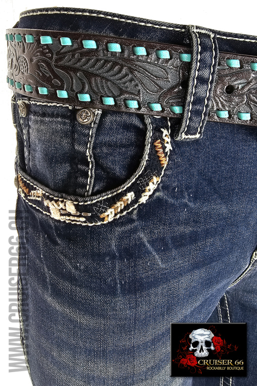 Den frechen Jeans-Look ergänzen Sie mit passenden Highheels oder einem farbigen Pumps. Auch Biker, Linedancer, Rock'n Roller und Mode-Freaks lieben die US-Designer Jeans, vor allem gehören sie zur Ausstattung eines Cowboys und in den Schrank jedes Cowgirls und Western Reiterin, prominent und unschlagbar sind sie sicher auch auf dem Linedance Parkett.