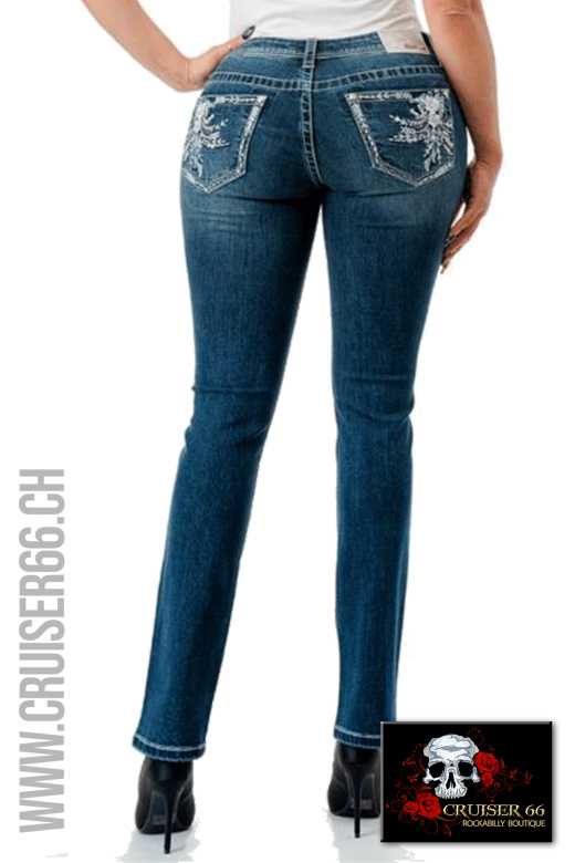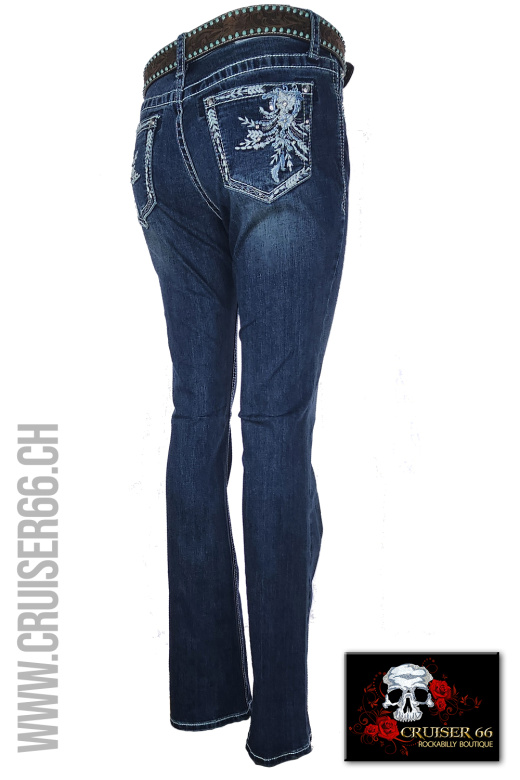 Den frechen Jeans-Look ergänzen Sie mit passenden Highheels oder einem farbigen Pumps. Auch Biker, Linedancer, Rock'n Roller und Mode-Freaks lieben die US-Designer Jeans, vor allem gehören sie zur Ausstattung eines Cowboys und in den Schrank jedes Cowgirls und Western Reiterin, prominent und unschlagbar sind sie sicher auch auf dem Linedance Parkett.