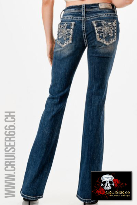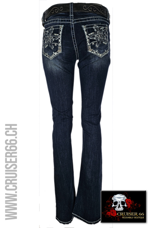 Den frechen Jeans-Look ergänzen Sie mit passenden Highheels oder einem farbigen Pumps. Auch Biker, Linedancer, Rock'n Roller und Mode-Freaks lieben die US-Designer Jeans, vor allem gehören sie zur Ausstattung eines Cowboys und in den Schrank jedes Cowgirls und Western Reiterin, prominent und unschlagbar sind sie sicher auch auf dem Linedance Parkett.
