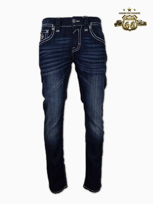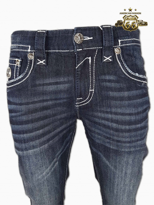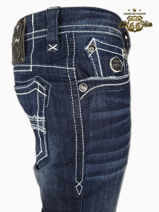 Amerikanische Jeans mit weissen Ziernähten und auffälligem Design finden