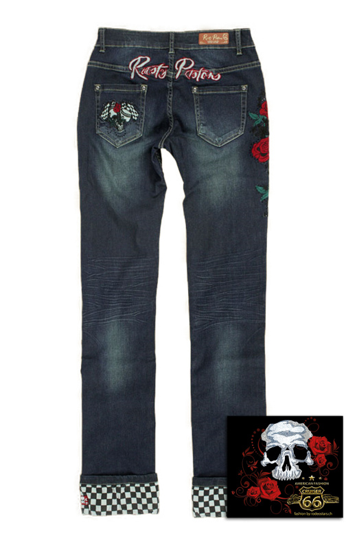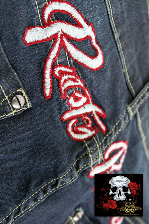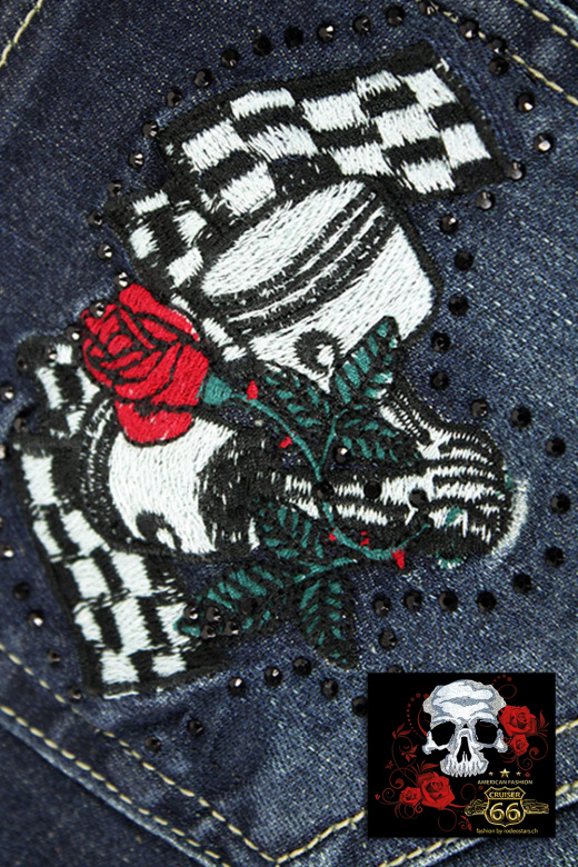 - Rockabilly Motiv gestickt mit Rosen und Würfeln