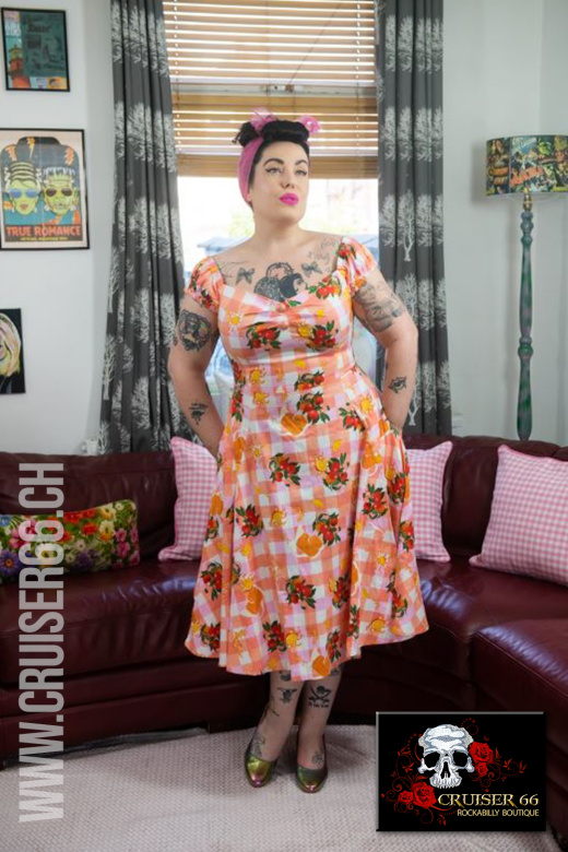 Karo Kleid mit Orangen Print