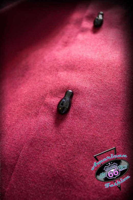 linken Vorderteil und eine Passe am Rückenteil. Die Knöpfe in Bowling-Pin-Form