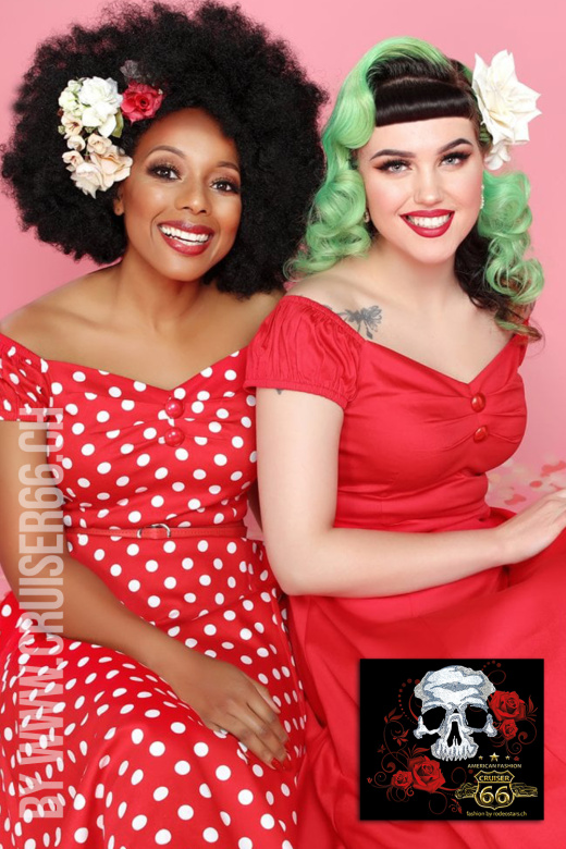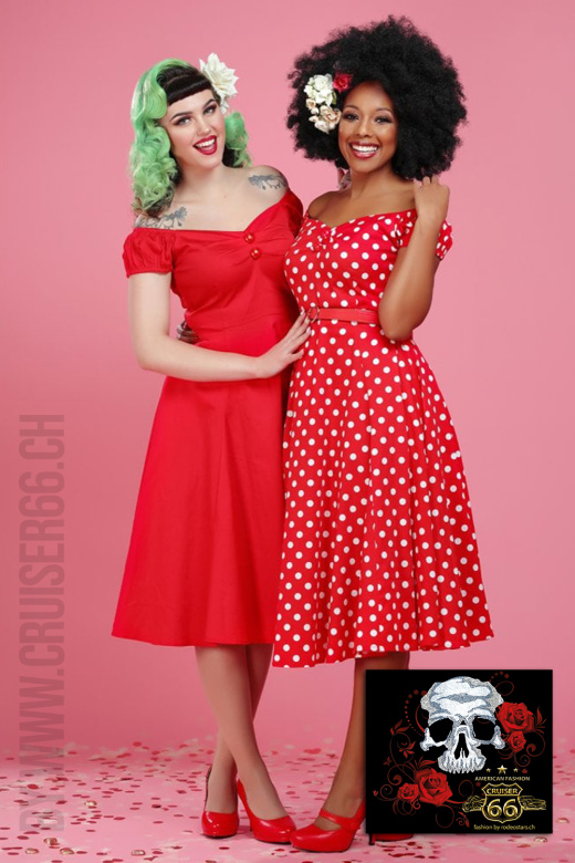 - 1950s Look Swing Kleid Rot/Weiss